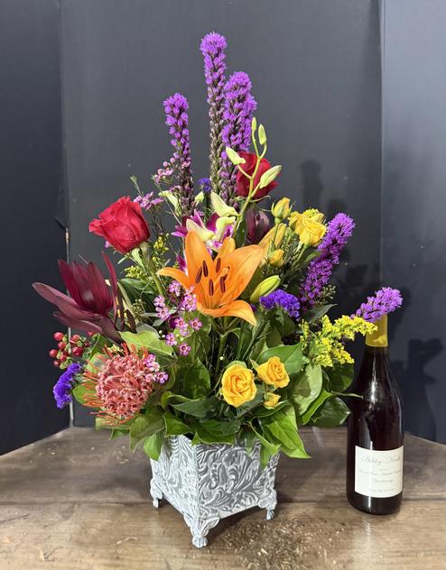 Please note that the wine bottle in our arrangement photographs is for scale and not available for delivery.