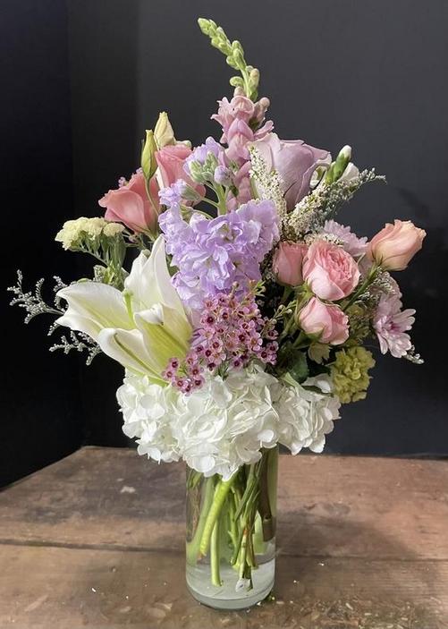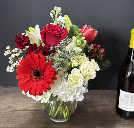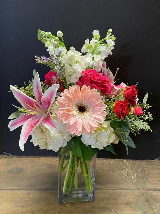 A cute lil pop of Valentine's Love, with a nice mix of quality blooms for your special someone.